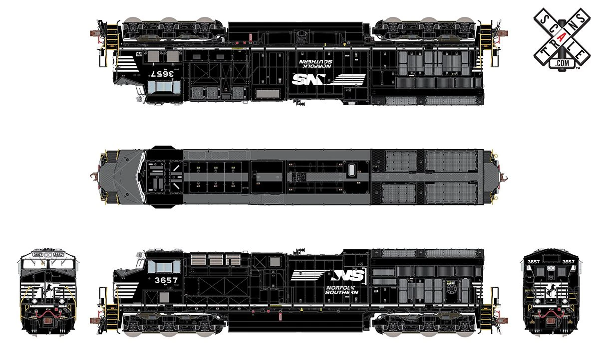 ScaleTrains Rivet 33203 HO Scale GE ET44AC Tier 4 GEVo Diesel Norfolk Southern NS 3666 LokSound